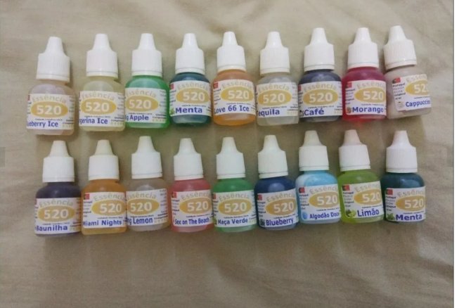 Descrição O Kit contém 05 Essências, marca 520 de 15 Ml cada - as essências NÂO contém NICOTINA. sabores de acordo com a disponibilidade de estoque Sabores com mais saida : Maçã do Amor /...