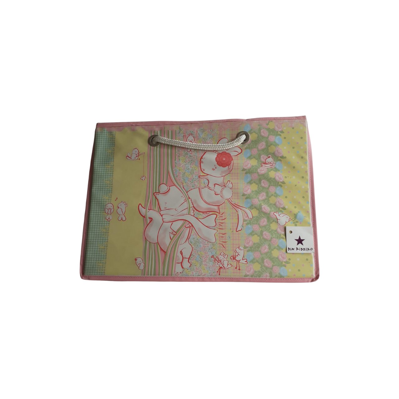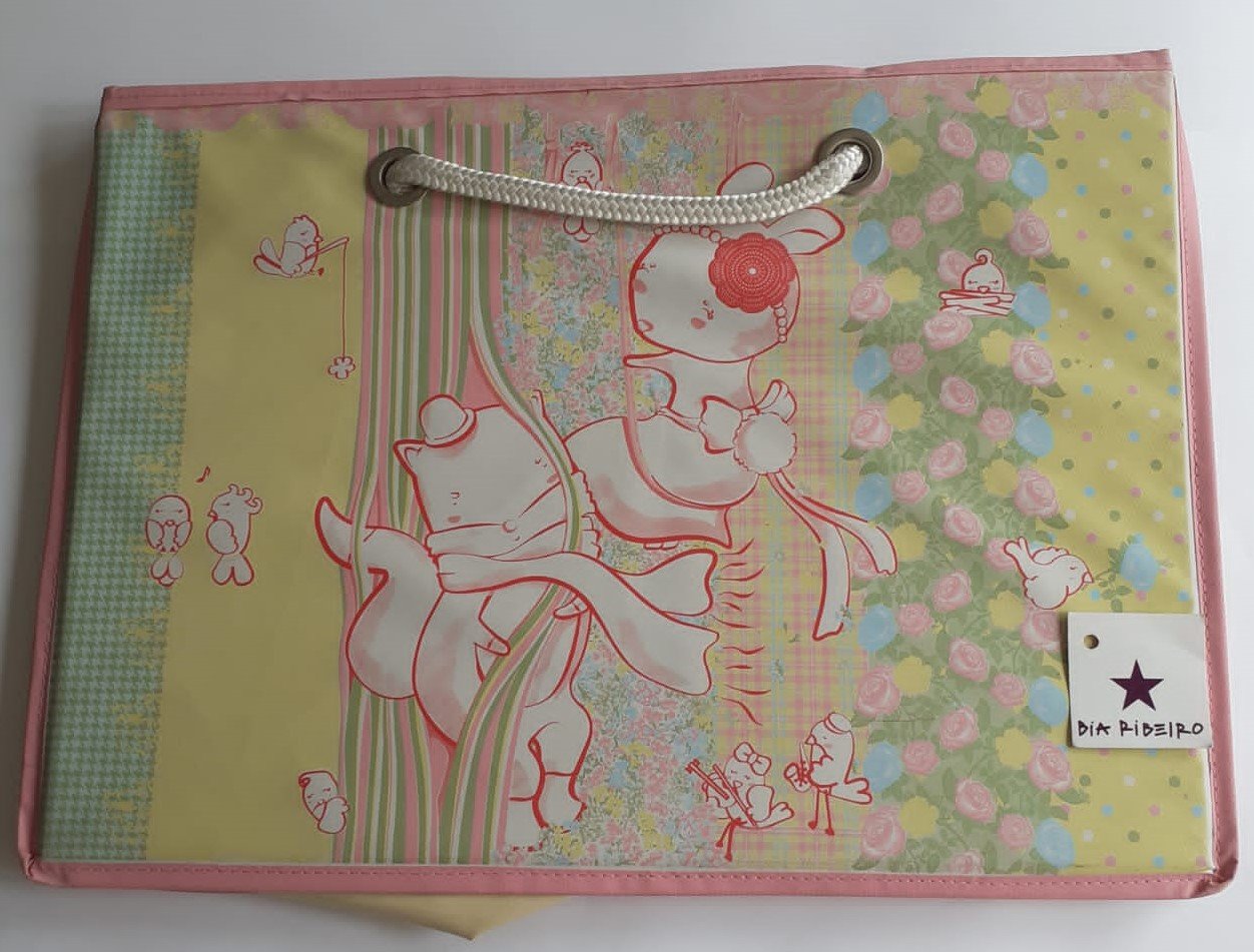 Baú grande, estampa Romance (cesto com alças), medidas 50x34x34 (cm).