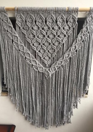 linha barbante spesso - cor cinza - 85% algodão - 24 fios. comprimento com o bastão: 70 cm. altura: 85 cm. correios funcionando normalmente, talvez a encomenda demora para chegar um pouquinho.